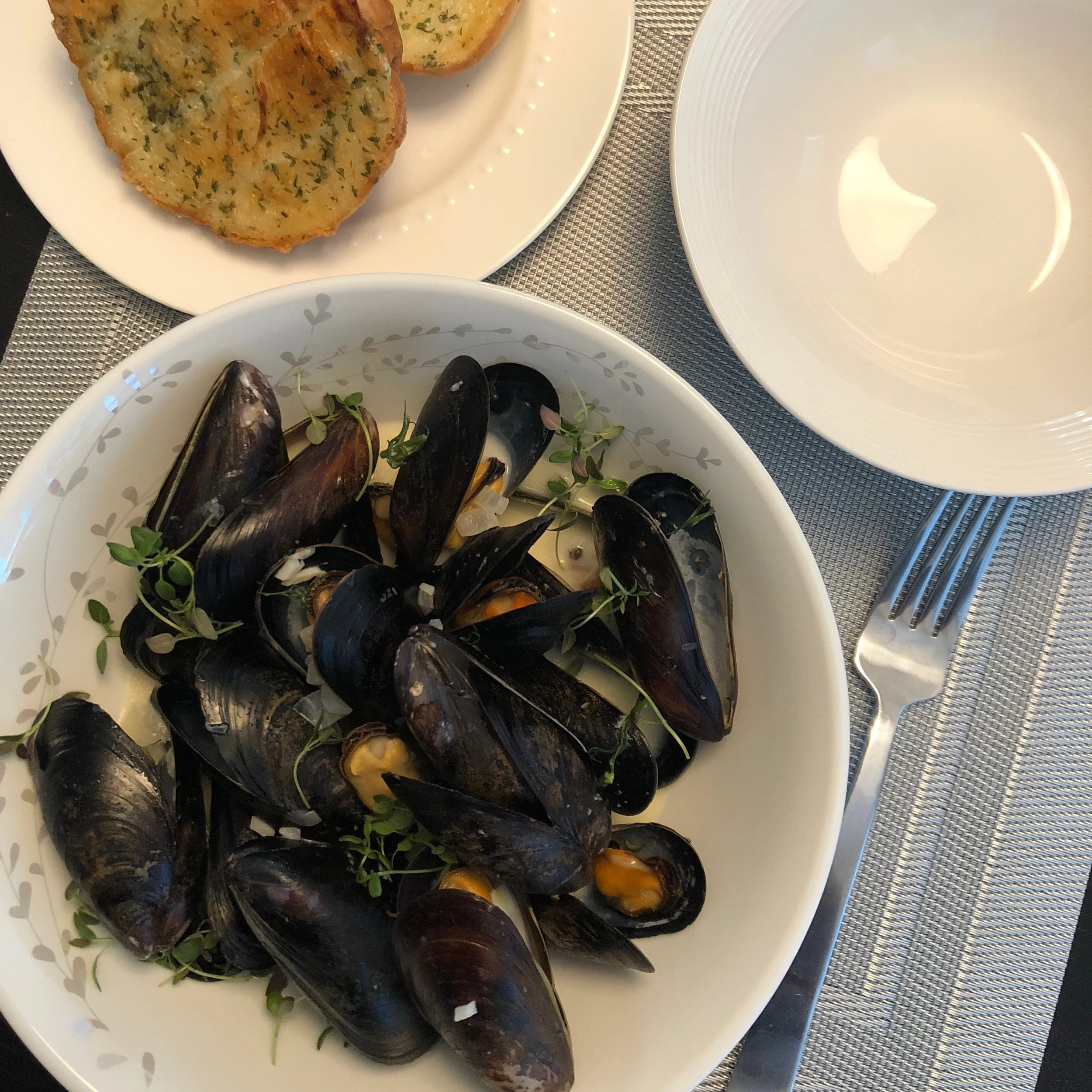 I received a free 2lbs of mussels last week with my groceries and My Oh My. I decided to somewhat follow Serious Eats' "The Best Moules Marinières" recipe. I didn't have all the ingredients so I made a few substitutions and it was so good. I served them with garlic bread for dipping.
